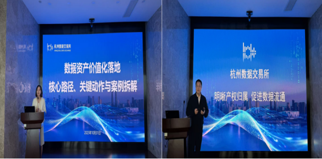 沙龙围绕数据资产价值化、数据产权登记等热点议题展开深入讨论。杭数交党支部杭数宣讲员、业务经理盛爽以《数据资产化落地:核心路径、关键动作与案例拆解》为题,剖析了数据了数据产品化与资产化的实践范式。杭州数据交易所产品发展部负责人胡雷则在《数据产权登记:筑牢数据要素流通根基》演讲中强调,产品明晰是数据流通的前提。杭数所联合监管机构与技术企业,推出“数据要素合规流通数字证书”,以区块链技术实现确权与跨链互认,有效降低企业合规成本,为后续交易与金融化赋能奠定基础。